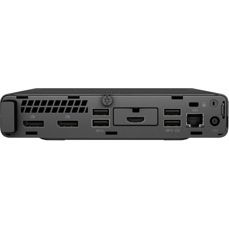 Trotz seiner kompakten Größe bietet der HP EliteDesk 800 G4 Mini eine Vielzahl an Anschlussmöglichkeiten, darunter USB-, DisplayPort- und Ethernet-Anschlüsse, für den einfachen Anschluss an externe Peripheriegeräte und Geräte.